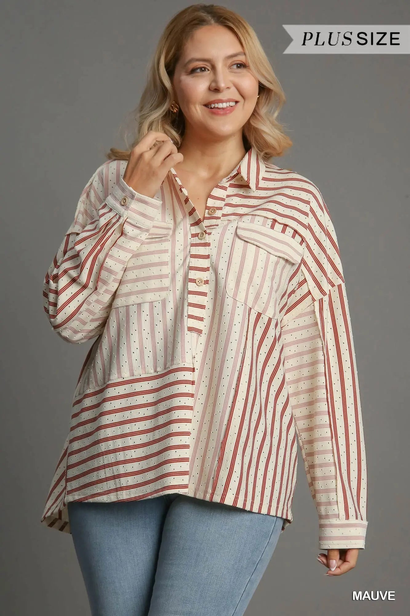 This striped collared top embodies understated elegance with its refined design and timeless appeal. The structured collar and carefully balanced stripe pattern create a polished aesthetic suitable for both professional and casual settings. Its versatile nature makes it an invaluable addition to any wardrobe, pairing beautifully with tailored separates or relaxed silhouettes alike. The quality construction ensures lasting wear, making this a sophisticated investment piece that will serve you season after season.