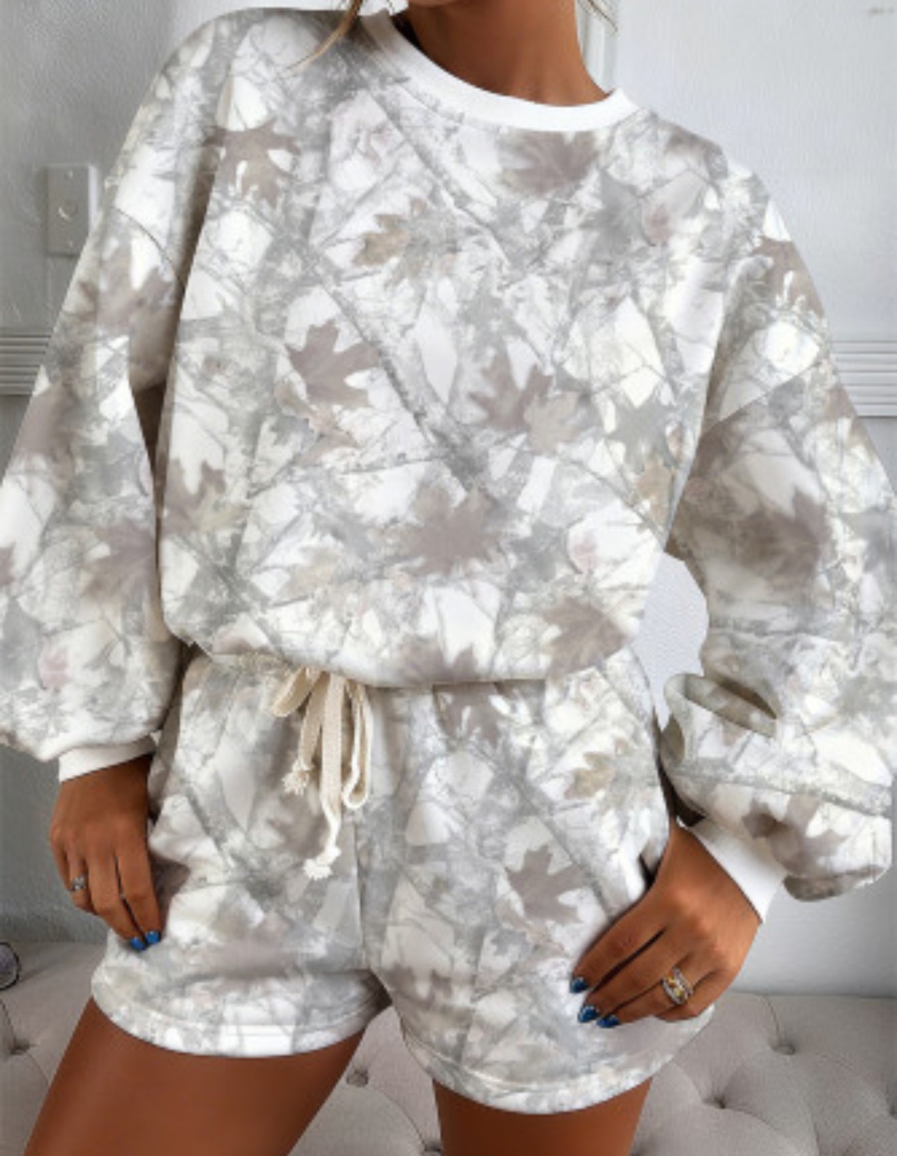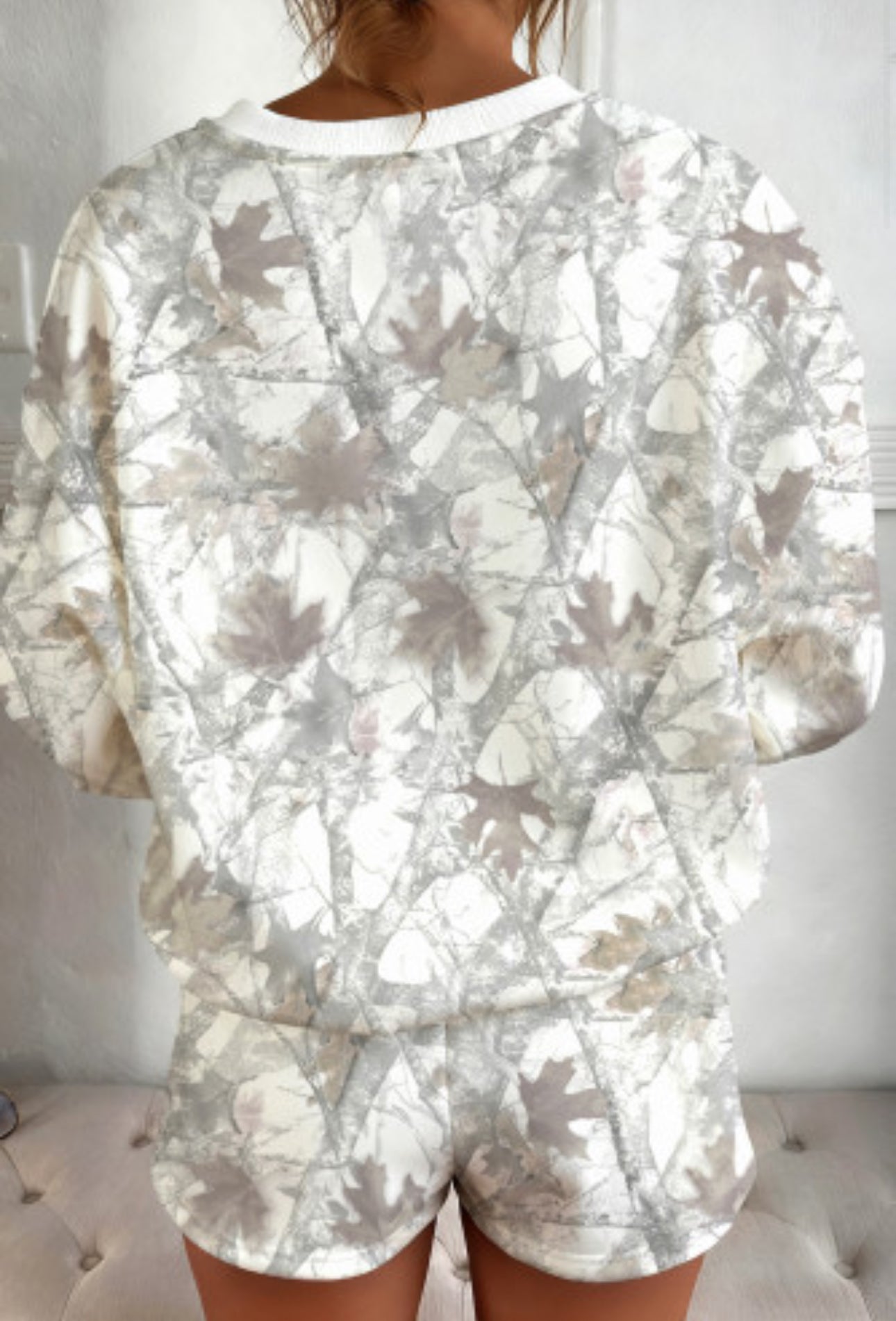 Embrace the art of effortless style with our Light Grey Abstract Woodland Camo Print Baggy Pullover Drawstring Shorts Set. Made from premium materials, this set combines comfort and sophistication in a luxurious camo print. Perfect for any casual occasion, show off your fashion-forward taste with this chic and versatile ensemble.